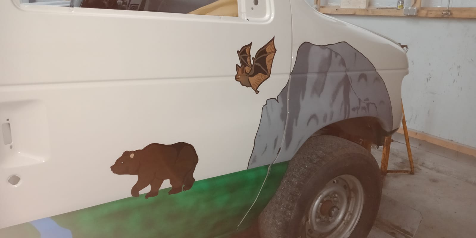 Helaas kunnen we hem alleen nog niet naar huis brengen. We zitten al enkele weken te wachten op een nieuw rubber om de voorruit terug te laten plaatsen. Uiteindelijk besluiten we deze ergens anders te bestellen, waarna hij na 2 weken wordt geleverd.