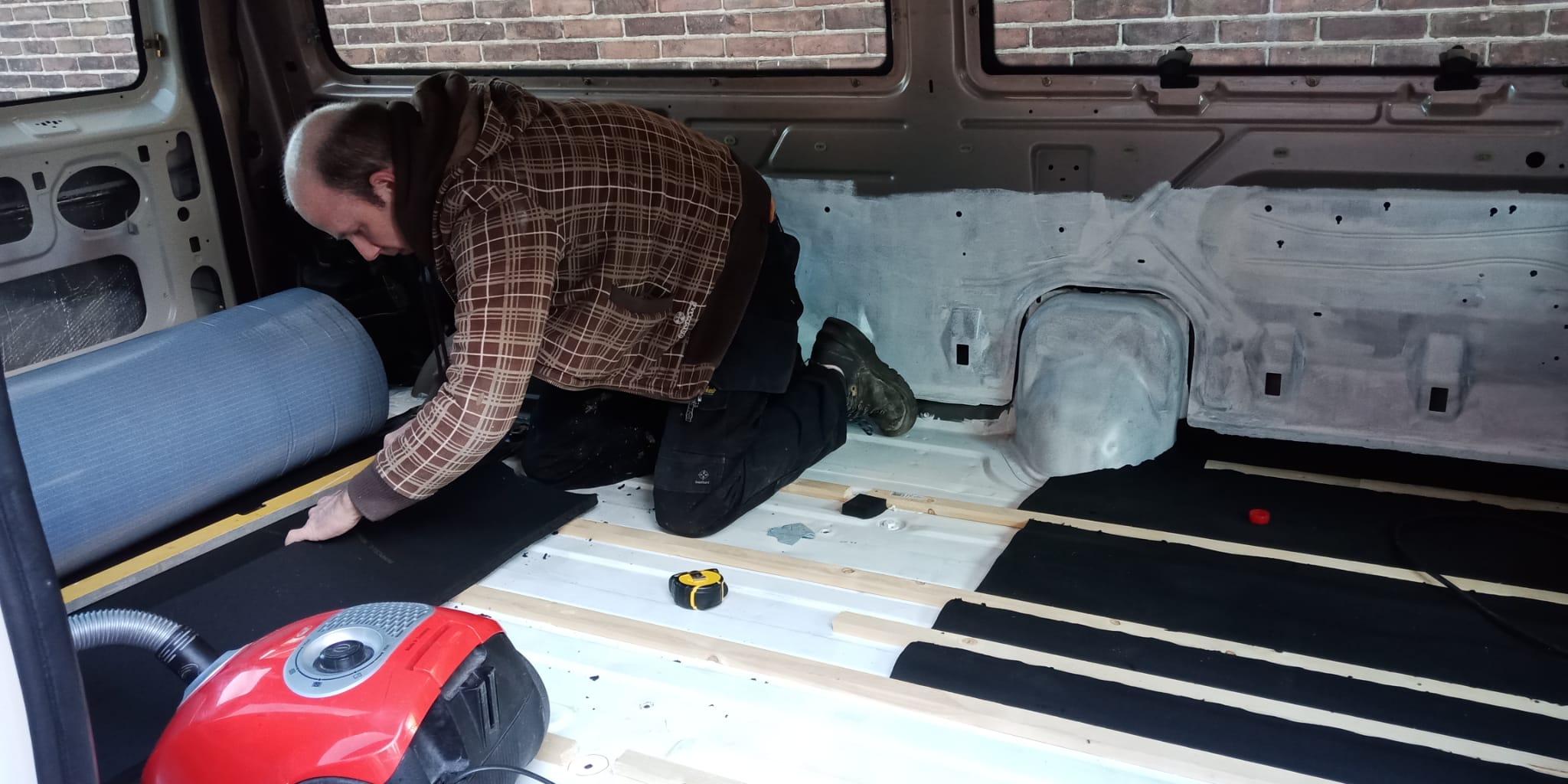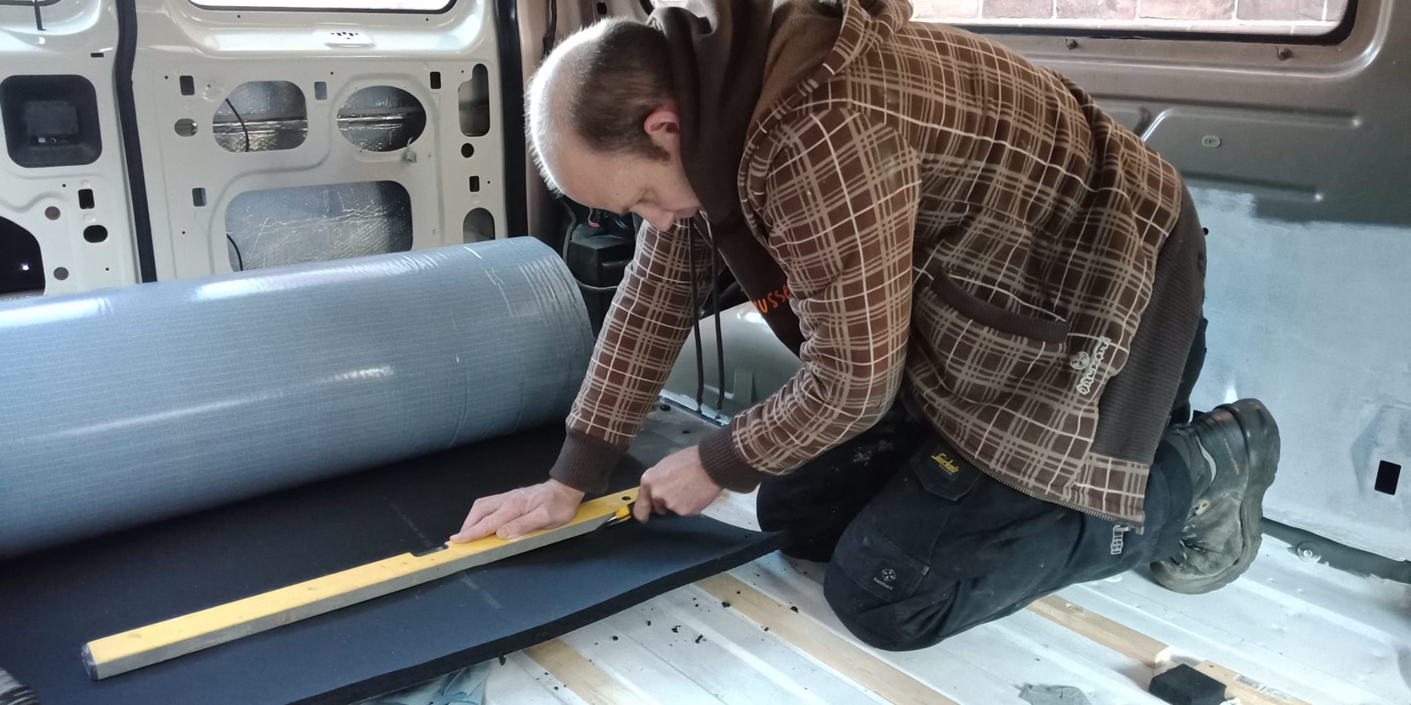 Zodra de bus weer op de oprit stond zijn we begonnen met het isoleren.