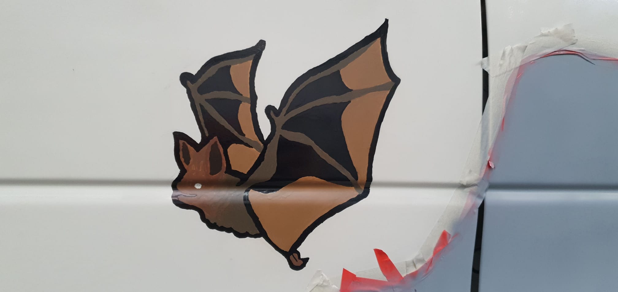 We worden steeds beter in het gebruik van de airbrush en de gewone spuitbus. Natuurlijk gaat er ook wel eens iets fout, omdat we de tape niet goed geplakt hebben en de verf er dus onder loopt of we hebben niet ver genoeg afgeplakt zodat je spuitbus spray ziet als we het papier en tape weghalen.